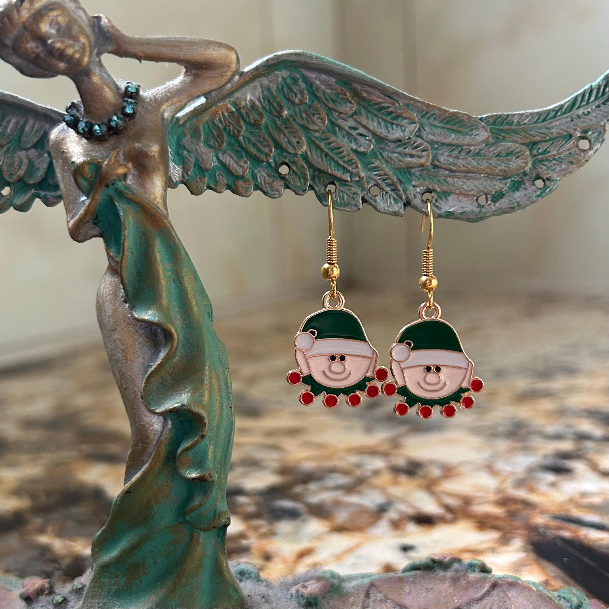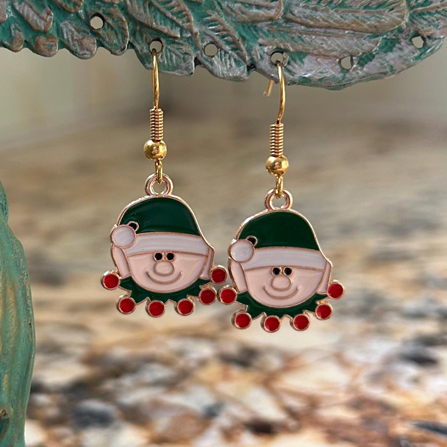 Cute enamel Christmas Elf holiday earrings. These earrings dangle from gold plated hook ear wires. Great stocking stuffer.