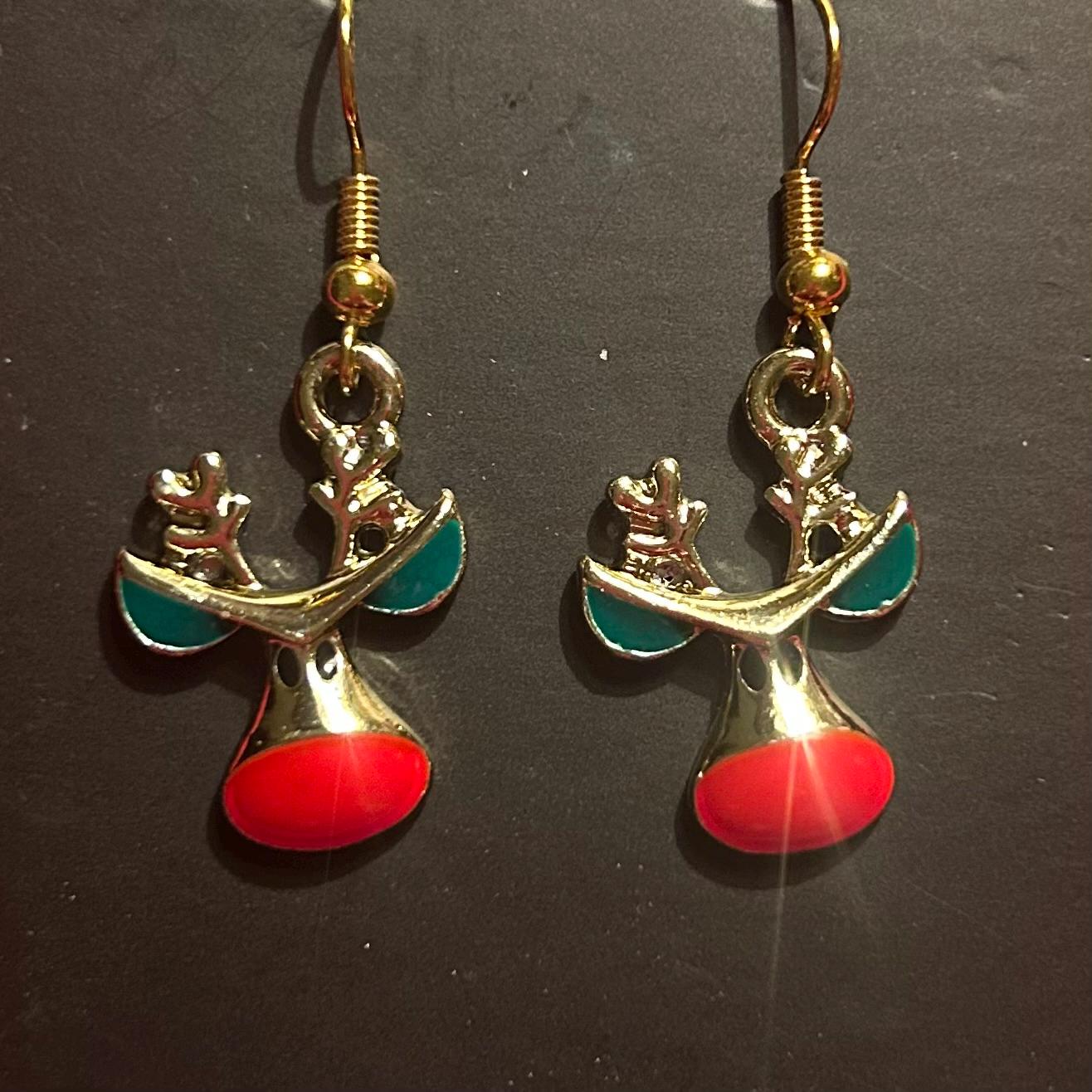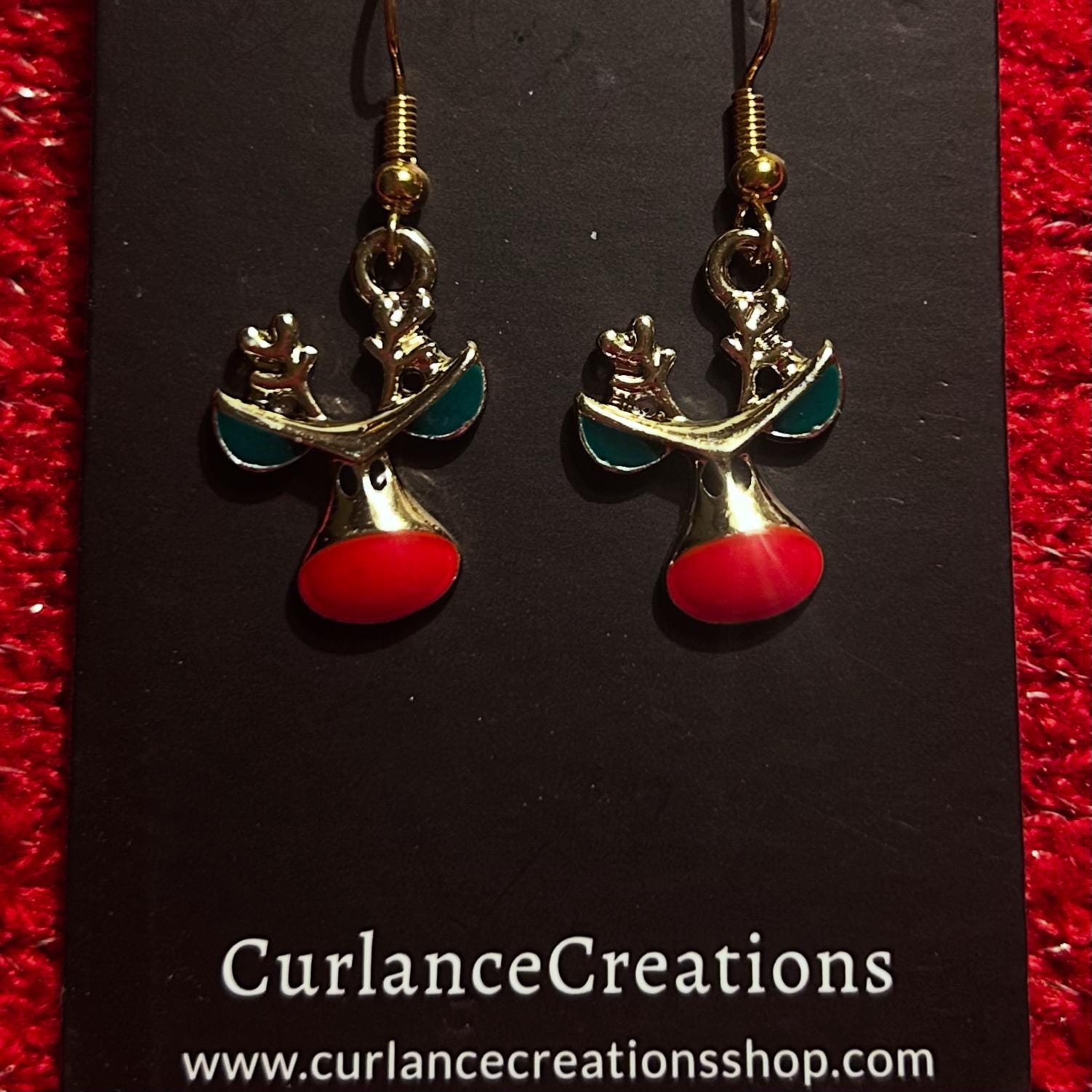 Super cute big red nosed reindeer charm earrings. These earrings dangle from gold plated hook ear wires. Great stocking stuffers!