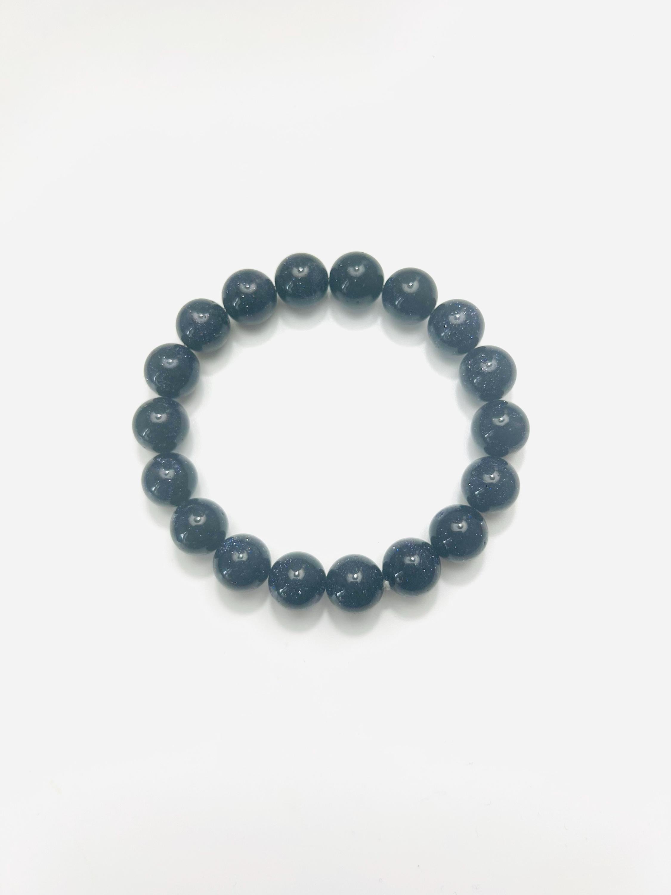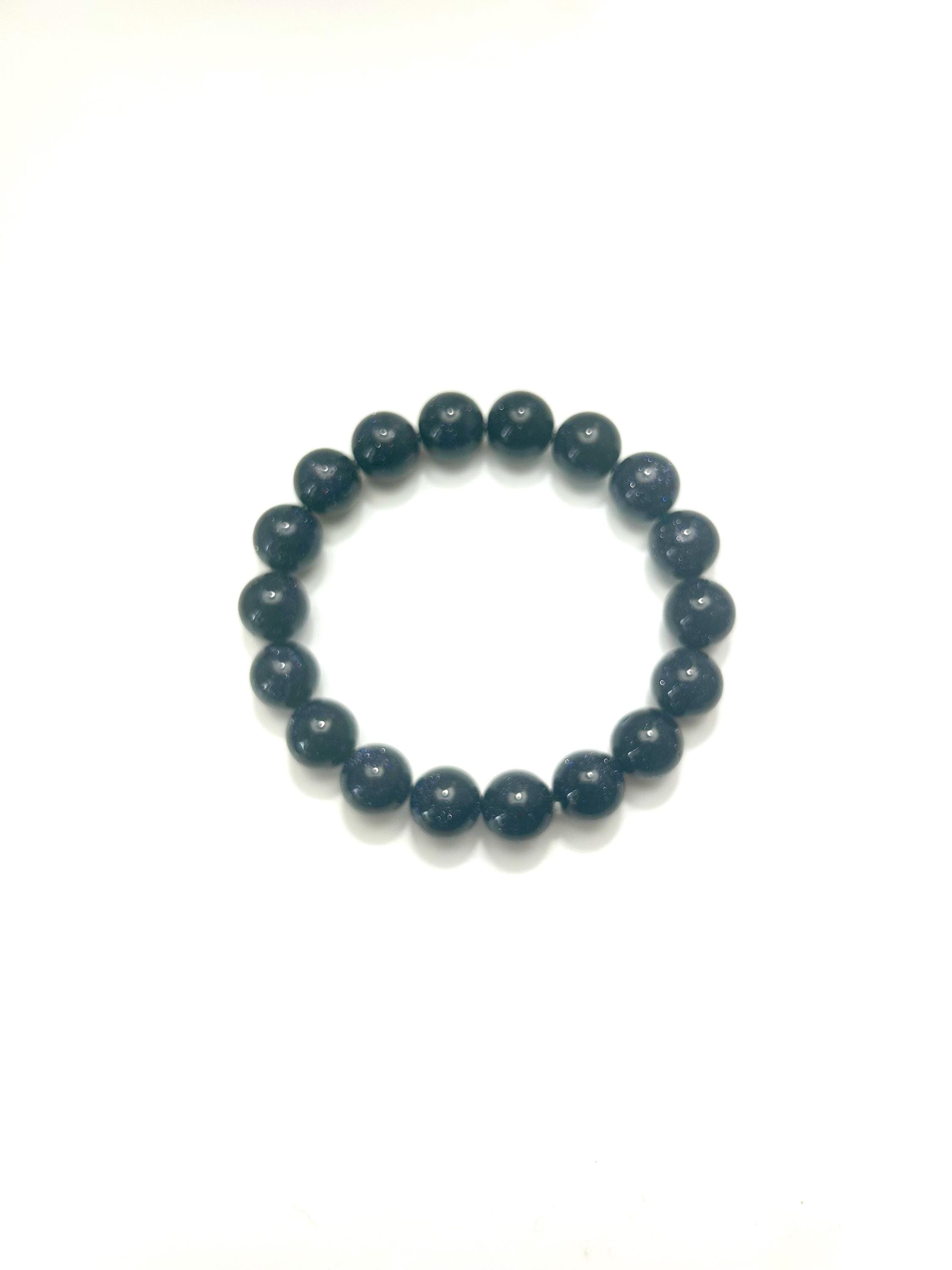 Blue Goldstone Stretch Bracelet. Beads are 10mm. The stone of ambition, promoting wisdom and confidence. Bracelet approximately 7 inches. Fits average woman’s wrist. Stones are blue with specks of gold. Beautiful AAA stones.