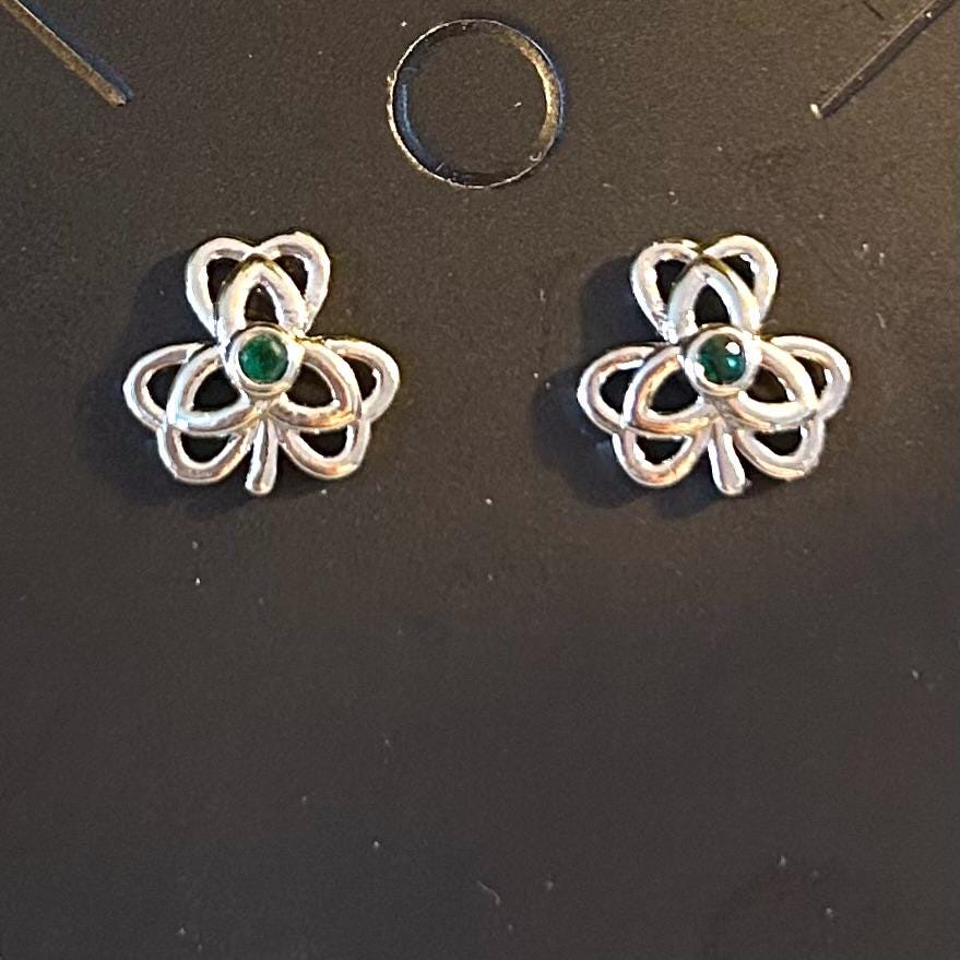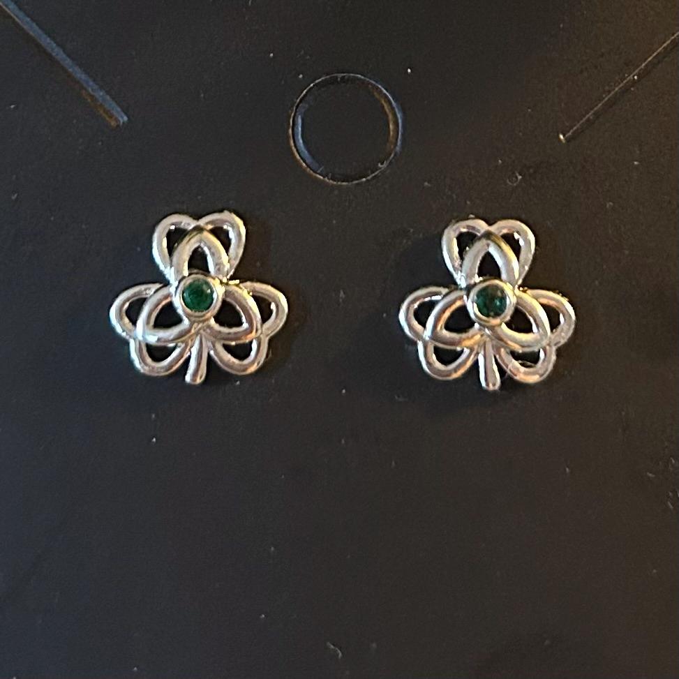 Silver Plated Shamrock earrings with green rhinestone accents. Very pretty earrings.
