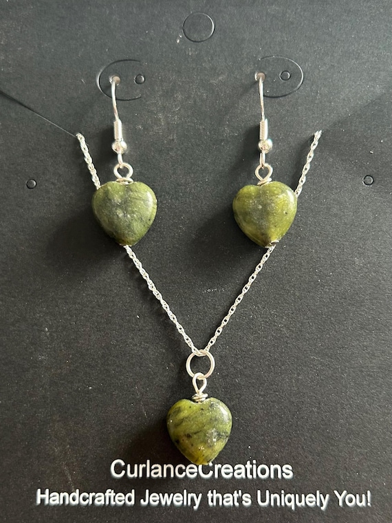Connemara Marble Heart Earrings and Pendant Sterling Silver Set